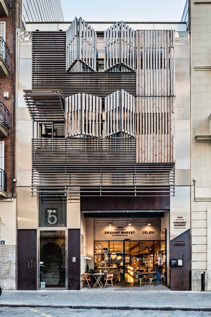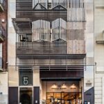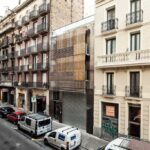 Nel primo caso, è esemplare il progetto dello studio Mateo Arquitectura, realizzato nel 2013 a Barcellona, dove all’interno dell’edificio da riqualificare sono stati ricavati quattro appartamenti compatti, di circa 50 m2, delle zone comuni e un esercizio commerciale al piano terra. L’edificio si trova in una stretta via del centro cittadino, nel quartiere denso e rumoroso di Sant Gervasi, dove le abitazioni del vicinato si proteggono dall’esterno con mura spesse. Gli architetti hanno voluto lavorare per contrapposizione, seppur con lo stesso fine, utilizzando elementi leggeri, percepiti senza peso.