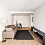 Quest’ultimo strato, premurosamente pensato nelle sue parti fisse e mobili, permette di aprire e chiudere la facciata secondo le necessità, personali o climatiche, dei proprietari. Separato dal primo grazie a 45 cm d’aria, costituisce un sistema dinamico che reinventa lo stile tipico di Maiorca, con quattro differenti tipi di meccanismi. L’intervento, costituendo un filtro tra interno ed esterno, quindi tra pubblico e privato, conferisce anche una nuova identità all’appartamento, che rinnova così la sua immagine urbana. L’edificio si relaziona con il vicinato tramite due facciate, la prima situata verso la strada, la seconda verso la corte; quest’ultima è caratterizzata da larghe aperture metalliche, due lunghi balconi e dei settori opachi, alternati in maniera da fornire la luce necessaria per gli appartamenti e per la zona commerciale al piano terra. Ciascun nucleo è disegnato come un vero e proprio continuum, con le stanze organizzate intorno a un soggiorno che si estende in lunghezza entro le due facciate.