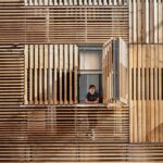 Il sistema scelto è quindi quello delle schermature solari, che non solo aumentano la privacy degli utenti, ma permettono anche di migliorare le prestazioni energetiche dell’intero complesso. L’intervento è stato pensato a strati: uno interno, di acciaio e vetro, e uno esterno, composto da una serie di listelli in legno che,  così composti, formano un brise soleil.