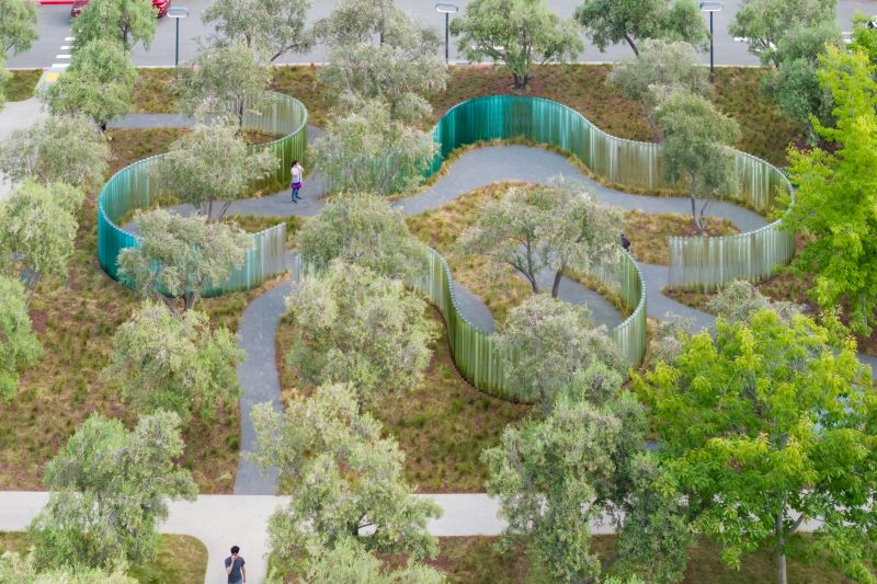 Un esempio significativo è il progetto Shui Shui di Atelier Let’s + Serendipity Studio, il cui concept è quello di ricreare nella città di Kaohsiung, nel sud di Taiwan, le sensazioni e le percezioni appartenenti al paesaggio circostante. La città, originariamente fortemente connotata dalla presenza dell’oceano e delle montagne, ha perso negli anni i suoi caratteri naturalistici a causa dell’intensa industrializzazione. L’installazione, situata nell’area portuale, si compone di due muri di cemento, alti 18 metri, che si snodano sinuosi e danno vita a un percorso che ricorda un canyon per il suo sviluppo tortuoso e irregolare.