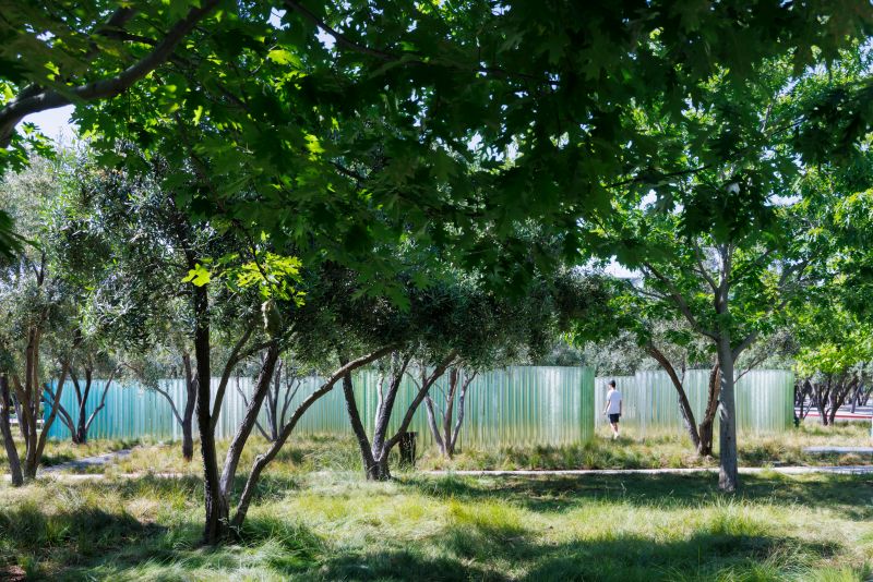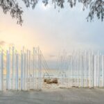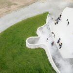 Infine, il progetto dello studio HAS design and research, Intangible Sound, propone un’esperienza differente, dove l’udito è protagonista. È stato pensato per la città di Shenzhen che negli anni è passata dall’essere un piccolo villaggio di pescatori a una vera e propria metropoli, a oggi considerata una delle città più popolose dell’intera Cina. I progettisti cercano quindi di recuperare le tradizioni del luogo, tramite un’installazione che recupera una piattaforma semi-arcata in calcestruzzo introdotta da due scalinate laterali, coronandola con una sequenza di lamelle metalliche. Essa è completata connettendo la sommità degli elementi in acciaio al terreno, tramite un insieme di fili da pesca spessi 4 mm.