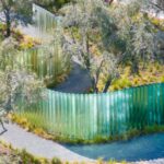 L’installazione, realizzata dall’artista Katie Paterson e dallo studio di architettura Zeller & Moye, consiste in un percorso esperienziale che si snoda tra gli ulivi dell’area esterna al Centro Visitatori dell’Apple Park di Cupertino. L’intento è quello di ammirare la luce naturale che si riflette sulla materia, variando in iridescenza durante il giorno e in brillantezza di notte, e che trasforma l’esperienza in una forma di meditazione. Gli utenti sono invitati a rallentare e a sintonizzarsi con l’immensità e la preziosità del pianeta attraverso l’immaginazione e l’interazione con l’opera d’arte. È possibile camminarle accanto o attraversarla, rilassarsi e sdraiarsi sull’erba, fare un picnic o giocare in questo luogo di ritrovo sociale e contemplativo al tempo stesso.