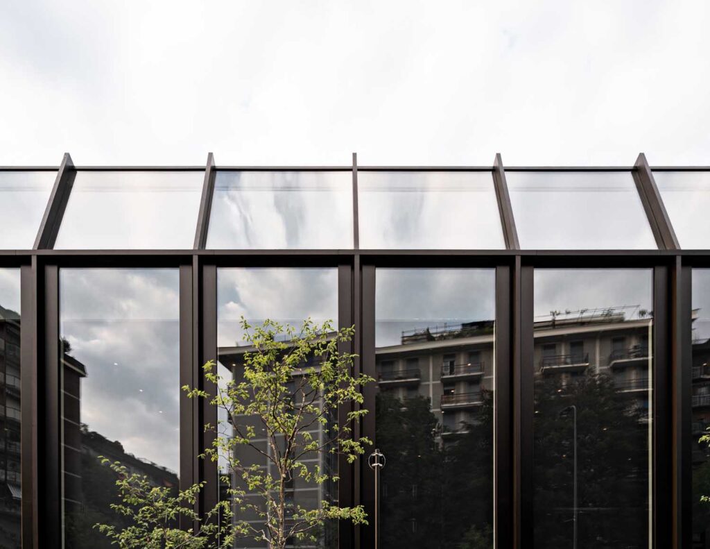 Il progetto rappresenta, in questo senso, l’anello di congiunzione tra la filiera produttiva, funzione per cui era stata realizzata la fabbrica oggetto d’intervento, e la filiera tecnologica, destinata allo sviluppo e alla futura vendita del prodotto. Le facciate vetrate sono l’elemento di contemporaneità all’interno di un progetto che vuole trasmettere il messaggio di quanto sia importante intervenire sul costruito, per migliorare l’impatto che il settore delle costruzioni ha sul nostro pianeta: questo è possibile in modo semplice, ovvero reinterpretando il progetto e dotandolo di componenti tecnologici esteticamente validi e tecnicamente avanzati.