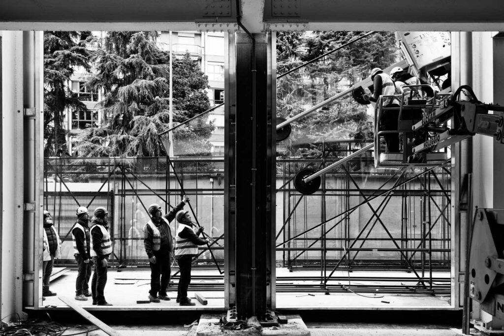 L’intervento, che ha permesso di ridurre del 19% le emissioni di carbonio rispetto all’edificio originale, ha trasformato la facciata vetrata esterna del palazzo in un punto di riferimento per il circondario, inserendo una grafica ciclistica a neon di grandi dimensioni sulla facciata esistente. L’obiettivo primario dei progettisti era evitare inutili sprechi e demolizioni dell’esistente, con la convinzione che una ridotta produzione di rifiuti sia la strada più corretta verso il net zero. L’involucro vetrato esterno, così come gli ambienti interni, è stato semplicemente rinnovato tramite una gigantografia al neon indirizzata agli utenti, il cui scopo è incentivare l’utilizzo di mezzi di trasporto ecosostenibili, come appunto la bicicletta.