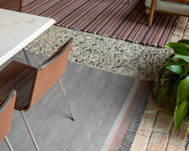 Tessuta con un filato ottenuto dalla riconversione del PET, la collezione di tappeti outdoor Le Fil Vert – disegnata da…