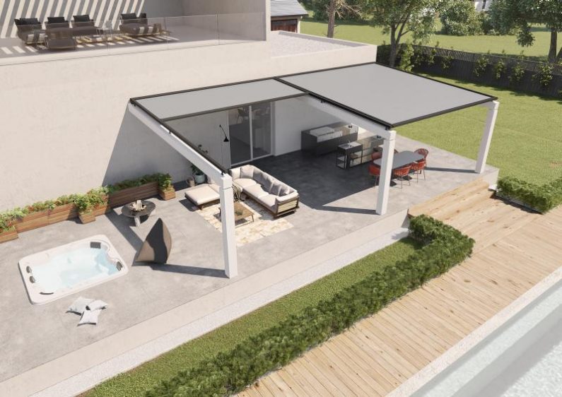 Med Twist, la pergola bioclimatica modulare accessoriabile, che permette di sperimentare un’immersione totale nella natura coccolati dal comfort di casa…