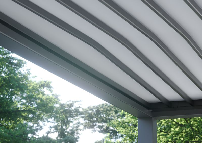 Esclusiva di R203 e R213 Pergolife è la bordatura laterale che presenta un’altezza di soli 33 cm. Questo consente di esaltare la purezza delle linee di Pergolife dando allo spettatore l’idea di leggerezza e delicatezza eterea. La copertura mobile è realizzata in tessuto PVC oscurante, impermeabile e ignifugo, per garantire la fruibilità in ogni momento della giornata e in ogni stagione.