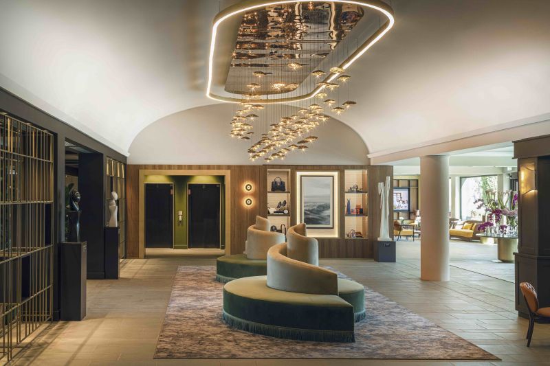 Gli spazi comuni sapientemente arredati con uno stile contemporaneo si ispirano ai salotti delle country house con l’innesto di vere e proprie sculture di luce, firmate dallo studio CaberlonCaroppi e realizzate in collaborazione con la Lighting designer Chiara Tabellini. Come la grande installazione luminosa che fa da filtro tra la reception e la zona bar, il cui tema è quello di riprodurre in modo scenografico la morbidezza delle colline toscane. Nel resort gli architetti hanno voluto creare un percorso che unisse interni ed esterni in un’osmosi armoniosa. Ad esempio, il bar écru interno prosegue verso l’esterno con una nuova postazione bar a ridosso delle piscine, dove sono state previste sedute sia fisse che movibili. Da questa area bar esterna si prosegue poi verso una terrazza dalla quale si gode della vista delle colline e del panorama circostante. ù