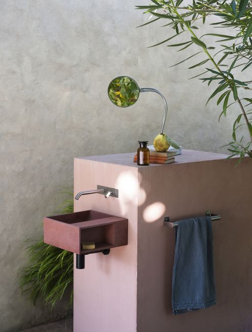 Con le sue semplici forme compatte e squadrate, il lavabo Handwash, nella nuova versione in Cementoskin®, è pronto per essere inserito in spazi sia indoor che outdoor. Il nuovo materiale garantisce la facilità di manutenzione e migliora la resistenza del lavabo agli agenti atmosferici. Disponibile con vano porta oggetti laterale e abbinabile a rubinetteria a parete o monoforo.