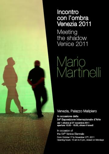 Mario Martinelli è conosciuto a livello internazionale per il suo lavoro sull’ombra ed ha esposto le sue opere in numerose città del mondo quali le recenti Tokyo, Toronto, Montreal e Parigi. Gira le città con uno schermo e un flash che, attivato inavvertitamente dal passante, gli “soffia” l’ombra su un telo che la trattiene a lungo staccata dai movimenti del corpo. Ecco l’incontro con l’ombra, la scoperta dell’immagine inattesa di sé e successivamente il suo lento venir meno. Quando lo schermo è in maglia metallica, l’ombra “catturata” può essere ritagliata lungo i profili andando così a creare un'”ombra in rete” da applicare sui muri come una scultura grafica, che da vicino appare come un oggetto metallico mentre da lontano come un’ombra immateriale carica di forza e presenza.