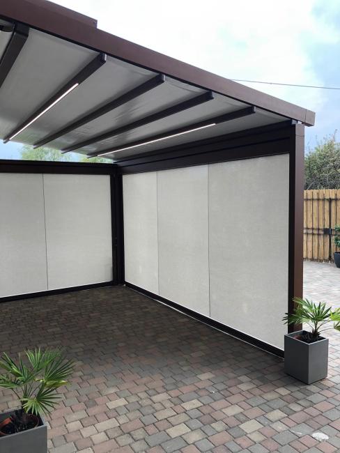 Kalé, è una pergola in alluminio estruso, dai profili esclusivi, dotata di telo ad impacchettamento, con movimentazione motorizzata e radiocomando. La sua “dinamica versatilità” dona carattere all’esterno , rendendolo un luogo da vivere e condividere.