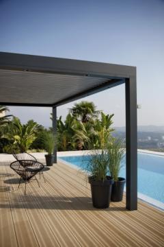 È una soluzione ecologica per la regolazione naturale della temperatura. Il comfort è accompagnato da un’estetica semplice e moderna, adatta per ogni tipologia di terrazza, giardino o patio.