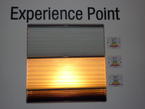 – Duette® il tessuto per tenda cellulare, riproposto in versione con cella da 64mm, ed in grado di ridurre il guadagno termico dei serramenti fino al70%. Presso l'”esperience point” nello stand, era possibile verificare con mano l’effetto schermante del tessuto Duette® 64mm nelle sue tre varianti: trasparente, traslucido e blackout;