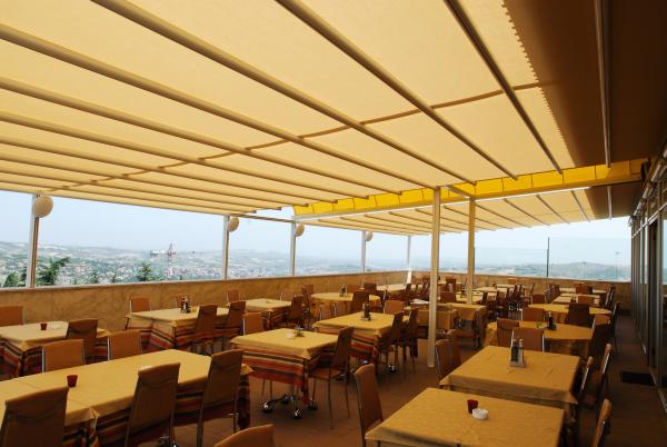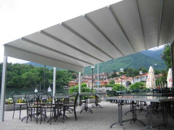 Pacchetto è una tenda molto versatile, il suo impiego può risolvere situazioni di copertura fino ad oggi irrealizzabili. Grazie allo scorrimento dei terminali sottoguida portante si possono coprire spazi di forma irregolare. Pacchetto può essere a monocampata o a più campate con telo unico. Pacchetto si stende con eleganza, semplicemente con la manovra ad argano o più comodamente con motore. Le chiusure frontali e laterali, a richiesta, garantiscono un ottimo spazio all’esterno protetto da vento e pioggia.