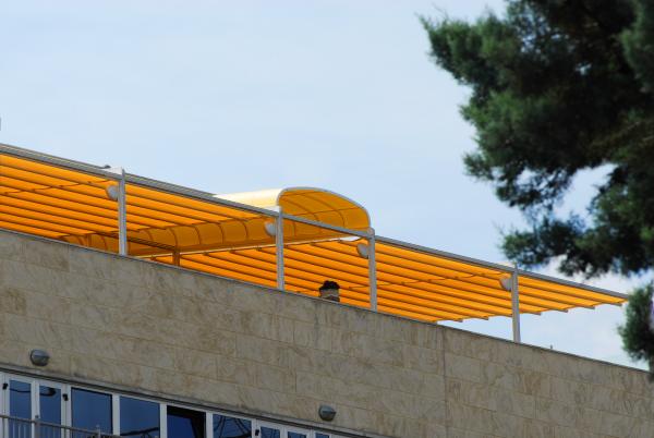 Both the attic blinds and Roman blinds make use of front support platforms which assure excellent resistance for projections of up to 7 metres. An added plus is that thanks to a minimum inclination of 8% and if equipped with waterproof fabric, they can be used not only as a shading system but as a means of protection against the rain. The aluminium support structure is highly resistant, stable and of modern design. A variety of different solutions are available according to application, dimension and shape requirements; the Roman blinds can either be made of aluminium or combined with wood. Thanks to the particular movement of the fabric-holder terminals they can be used for covering spaces of irregular shape. Available in over 300 different fabric patterns and colour combinations. Operation can either be by means of a manual rod or a motor.