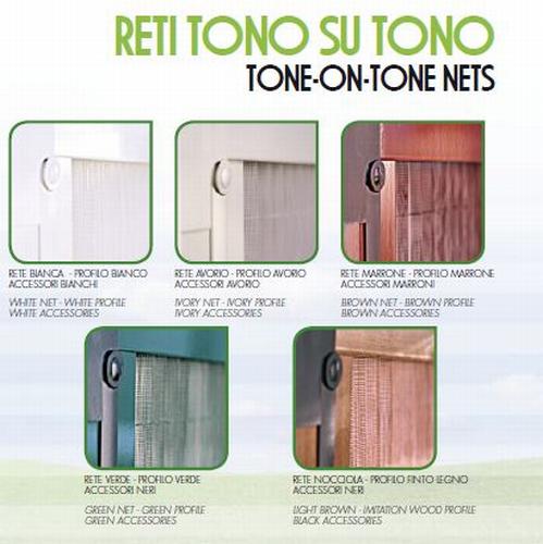 Le reti tono su tono per l’abbinamento dei colori rete con quelli dei profili nelle colorazioni naturali, studiati dalla designer Lucia Di Francesco. Una novità assoluta nel mercato che sottolinea il nuovo ruolo della zanzariera, l’arredo della casa.