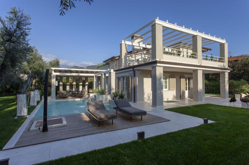 Villa Vaiana è frutto di un restyling di un fabbricato già esistenze. Situata nell’entroterra della Versilia, nel comune di Pietrasanta, nasce all’interno di un contesto magico e surreale che permette di estraniarsi dall’ambiente circostante per immergersi tra natura ed eleganza. Lo scopo del progetto, realizzato da Michele Vitaloni di Charmitaliastudio era quelli di creare un tutt’uno tra fabbricato e ambiente giocando con i contrasti e con le forme. Infatti, la piscina, non è un plus distaccato dall’intero progetto ma il naturale continuum tra natura ed edificio, cosicché, anche dall’interno, si possa godere del piacere di stare a bordo piscina. L’ingresso di quest’ultima è stato progettato come due grosse fioriere arricchite da piante grasse.