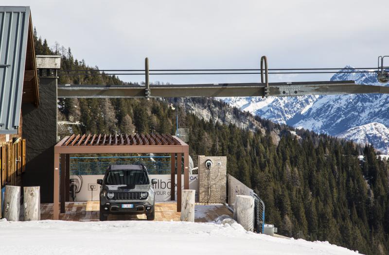 Due moduli della pergola bioclimatica Opera sono stati installati al punto d’arrivo di quella che è la funivia con cavo continuo più lunga d’Europa, nonché meta della nuova Jeep Renegade 4×4 protagonista della prima prova di ricarica con Easy Wallbox™.