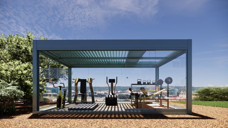 Le pergole possono essere completate con pedana in legno, illuminazione integrata e vetrate perimetrali, una soluzione chiavi in mano pronta per essere allestita con attrezzature e macchinari. La copertura può essere predisposta con un tetto fisso o con lame orientabili e/o impacchettabili. Un ulteriore vantaggio rispetto alla personalizzazione dell’ambiente che può essere facilmente modulato in base al periodo di utilizzo e alle condizioni atmosferiche. Un nuovo concetto di work out, un’esperienza immersiva che s’integra perfettamente con il contesto circostante. Giardini, terrazze, solarium, piscina ogni luogo può diventare il luogo ideale dove allenare il corpo e rilassare la mente.