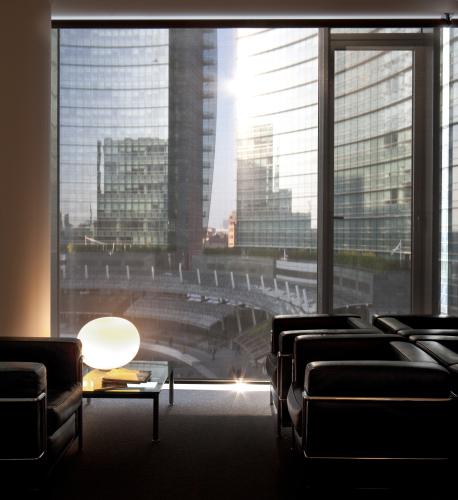 Ordine, eleganza e accostamento magistrale delle tinte tessili hanno permesso di rendere gli ambienti confortevoli visivamente, caratteristica di primaria importanza negli ambienti ufficio e ancor di più nell’headquarter di un’azienda che fa dell’aspetto estetico il proprio business. In questo contesto le schermature Resstende svolgono il corretto ruolo di proteggere dai raggi solari ma allo stesso tempo permettono di apprezzare la vista sulla splendida Piazza Gae Aulenti.