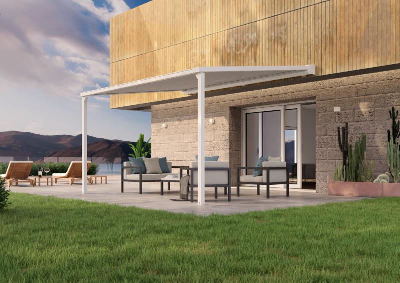 Sirio è disponibile sia nella versione addossata a parete con colonne, oppure nella versione “tetto” che può essere installata in una struttura pre-esistente. Sirio è stata progettata per essere accostata a strutture esistenti con un ottimo impatto estetico, grazie al suo attacco a parete perfettamente rifinito.