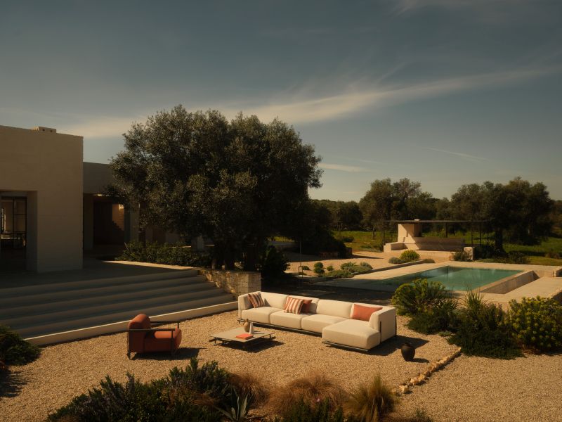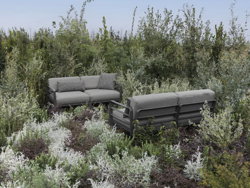 Tra le nuove proposte di Nardi, Maximo (design Raffaello Galiotto) è un divano modulare con struttura in resina rigenerata e tessuti ad alta componente riciclata che, a partire dal singolo modulo poltrona, permette di realizzare innumerevoli configurazioni. I volumi sono ampi, la seduta profonda e confortevole, la modularità flessibile e armonica grazie al sistema di aggancio di schienale e bracciolo. Dimensioni generose e accoglienti anche per i cuscini autocentranti dalle texture ricercate.