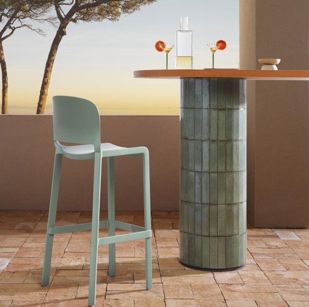 I dettagli dello sgabello Dome (design Odo Fioravanti) coniugano in un’unica espressione i linguaggi della plastica, richiamando gli incastri del legno e le forme del metallo, conservandone il gusto minimalista e la semplicità strutturale. Lo schienale dalla silhouette arcuata e la seduta rettangolare garantiscono la massima ergonomia. Realizzato da Pedrali interamente in polipropilene, è pensato per adattarsi a ogni situazione d’arredo, sia all’interno che all’esterno.