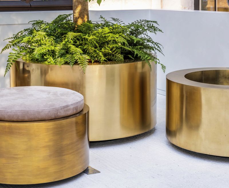 Ogni fioriera della collezione Cuprum (design Jan Buelens) fonde in modo impeccabile struttura e forma per unire il mondo organico delle piante e la materia. Dotate di un bordo extra largo, le nuove fioriere di Royal Botania offrono un isolamento superiore per aiutare le piante a crescere. All’interno o all’esterno, le piante prosperano grazie allo speciale sistema di drenaggio in acciaio inox e al profondo bordo isolante. Realizzata in ottone è disponibile da un diametro di 52 cm fino a due metri.